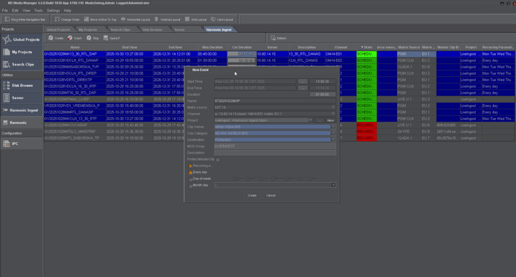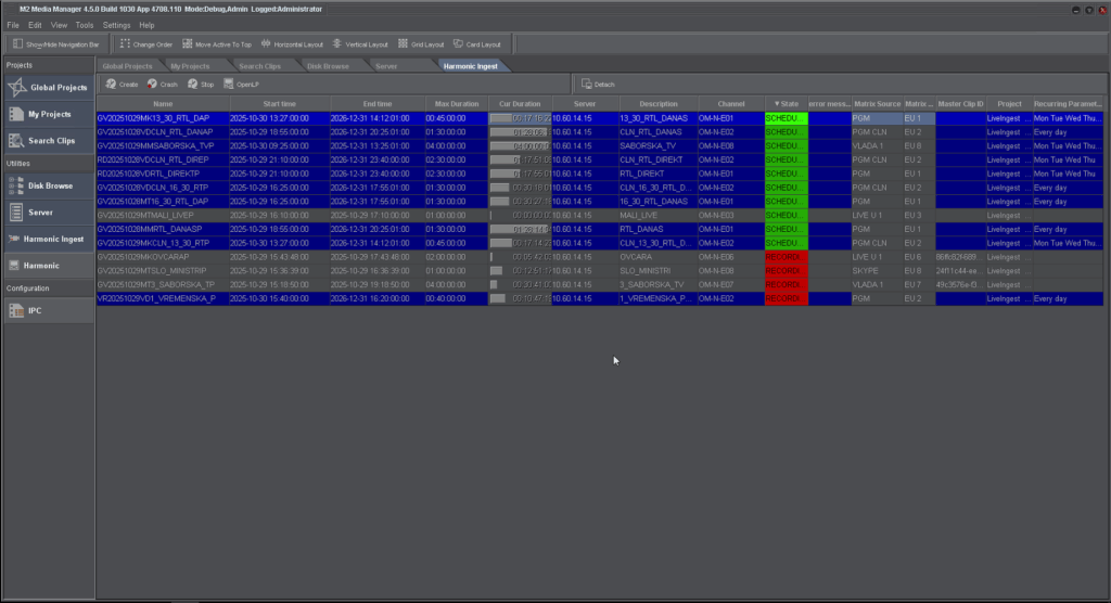 Choose from multiple Matrix inputs and Recording channels, and assign your recording to the right project. This ensures your media is stored in the correct location, fully indexed in the database, and easy to find later. You can also use MOSGROUP to organize assets by department (e.g., News, Marketing, or Agency feeds).
